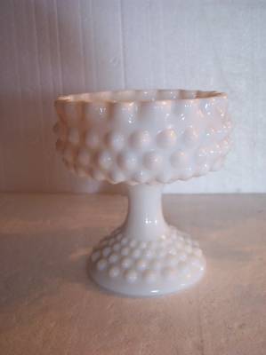 Vintage Double Hobnail Milk Glass Compote Pie Crust Rim
