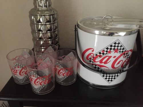 Title (ebay affiliate link): Vintage Coca Cola Ice Bucket -1980's With Ice Scoop And 4 Coca Cola Cups