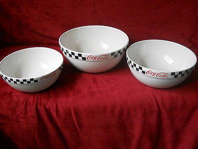 Title (ebay affiliate link): Set of 3 Coca-Cola Mixing or Serving Bowls Checker Board Pattern 8", 9" 10.5"