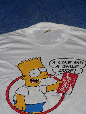 Title (ebay affiliate link): Vintage Bart Simpson A COKE AND A SMILE DUDE! T-Shirt Screen Stars Size Large