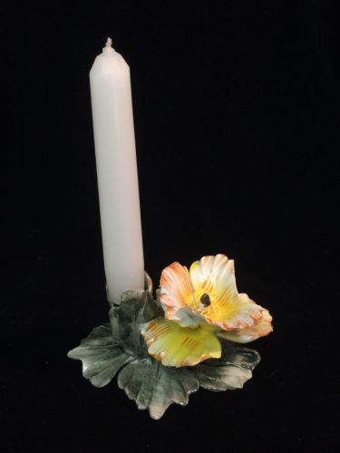 Title (ebay affiliate link): Vintage Capodimonte Yellow Flower Candle Holder. Broken Petal