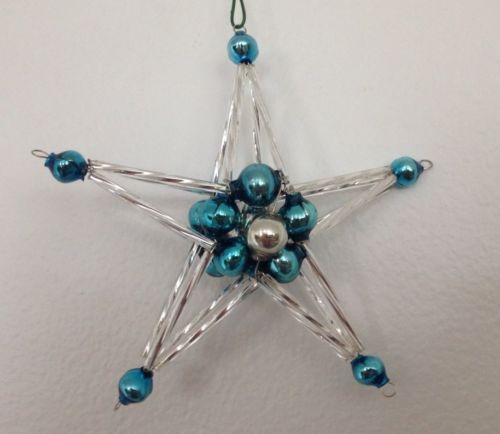 Title (ebay affiliate link): Vintage Mercury Glass Beaded Star Ornament: AQUA BLUE / SILVER 4"