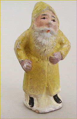 Very Old Antique German Santa, 2,2 inch., yellow-green