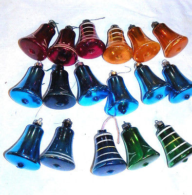 Title (ebay affiliate link): Vintage Large Shiny Brite Bells Glass Christmas Tree Ornaments Lot 3"