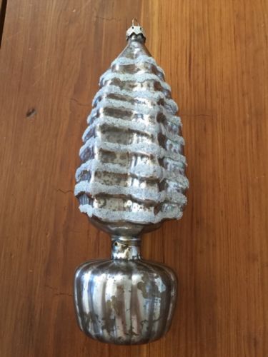 Title (ebay affiliate link): Silver Mercury Glass Figural 6.5" Christmas Tree Ornament Antique or Repro?