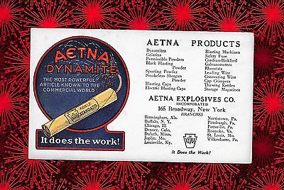 1920S ORIGINAL ADVERTISING INK BLOTTER AETNA DYNAMITE EXPLOSIVES