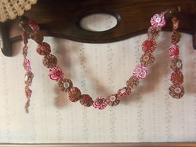 Primitive Christmas Peppermint Yo-Yo garland Sugar N Spice Gingerbread Winter