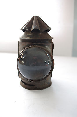 ANTIQUE - PRIMATIVE TIN CARRIAGE ? OIL LAMP - THICK LENS-DUAL WHALE OIL BURNER ?