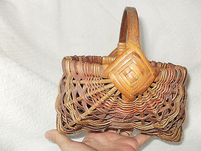 PRIMITIVE ANTIQUE? VINTAGE BUTTOCKS BASKET, SMALL, 6 1/2" LONG, OAK HANDLE