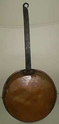 Antique Primitive Kitchenware Large Copper Frying Pan Iron Handle Curled