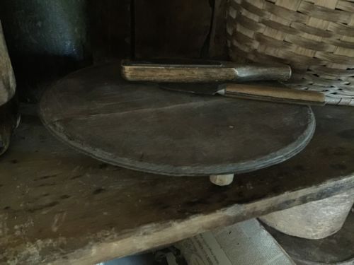 Primitive Barrel Top Riser Red Paint 4ur Early Sawbuck Table Buttery
