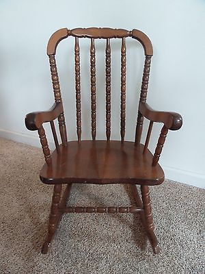 Title (ebay affiliate link): Vintage Childs Wooden Rocking Chair Spindle Kids Doll Small Wood Rocker 28"