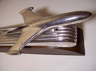 VINTAGE STYLE OFFICIAL GENUINE FORD HOOD ORNAMENT MOUNTED ON WOOD PLANE