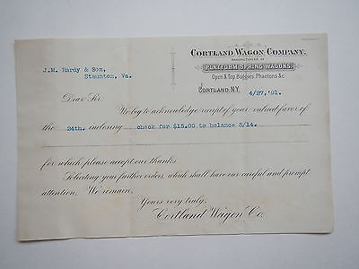 Antique Document 1891 Cortland Wagon Company New York VTG Staunton Virginia VA N