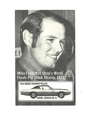 VTG Mike Fons Dodge Charger Rallye Advertising Card Stock Drag Racing 1972 N