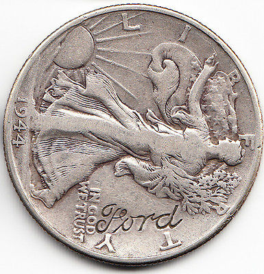 Title (ebay affiliate link): FORD logo counterstamp on 1944 Walking Liberty Half Dollar