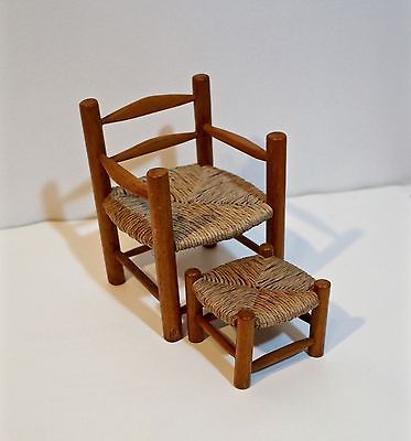 Title (ebay affiliate link): Antique 7" colonial doll chair & footrest, wooden ladder back, rustic woven seat