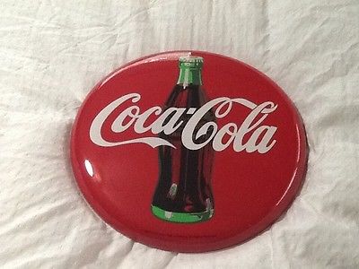 Title (ebay affiliate link): Round Metal 12" Coca Cola Button Sign Vintage 1990 NEW/ Unused