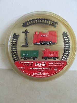 Title (ebay affiliate link): Older Popcorn Tin Lid With Toy Coca Cola Plastic Battery Operated Train w/Track