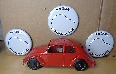 Title (ebay affiliate link): 3 DECEMBER 1971 VOLKSWAGEN PINS TOOTSIETOY VW BEETLE BUG CAR SHAPE TO COME PROMO