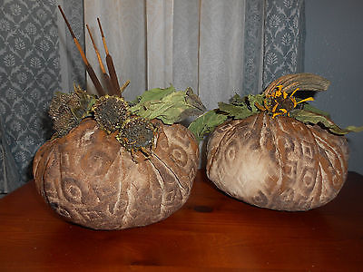 Primitive Folk Art Set OF Two Pumpkins Handmade Grungy Designs by Geannette