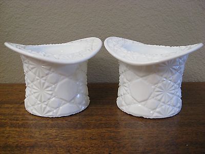 TWO VINTAGE MILK GLASS TOP HAT VASES