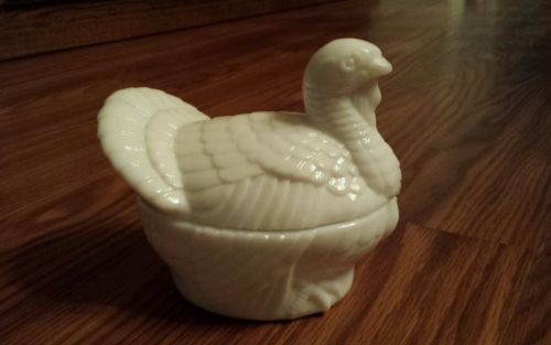 IMPERIAL WHITE MILK GLASS TURKEY ON A NEST 2 PC - EUC