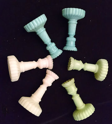 Milk Glass Miniature Swirl candlesticks - 3 pair; blue, white and green French