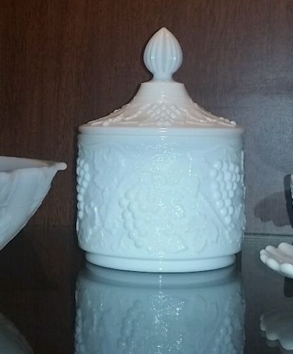 Title (ebay affiliate link): Candy Jar & Lid in Vintage Grape-Milk Glass by Imperial Glass-Ohio