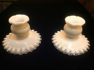 VINTAGE FENTON SILVER CREST CANDLESTICKS MILK GLASS WHITE