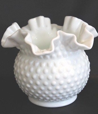 Title (ebay affiliate link): Vintage Fenton Hobnail Milk Glass Rose Bowl 5 1/4" Tall Scalloped Edges Signed