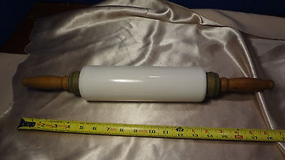 PRIMITIVE ANTIQUE MILK GLASS WOOD HANDLE ROLLING PIN
