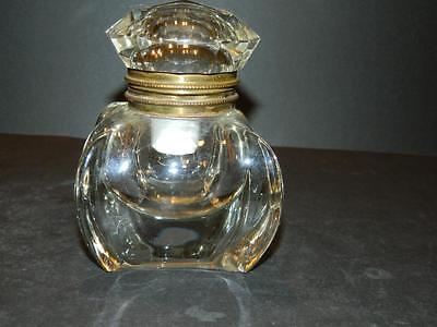 Clear Glass Inkwell Bronze or Brass Surround Milk Glass Ink Cup Antique