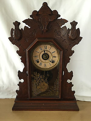 ANTIQUE SETH THOMAS KITCHEN ALARM CLOCK (SHELF, MANTEL, GINGERBREAD)