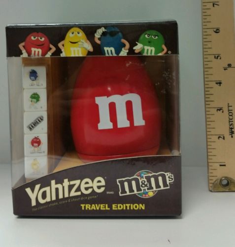 Title (ebay affiliate link): RED M&M'S YAHTZEE GAME COLLECTOR'S TRAVEL EDITION OUT OF PRINT!!