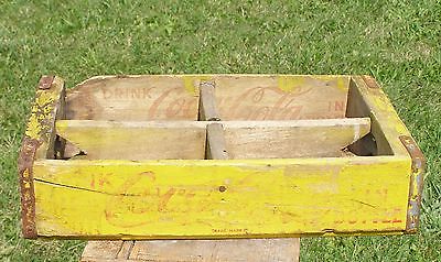 Vintage Coke Coca Cola Wood Box Crate Soda Bottle Yellow 4 Divider 18x12x4
