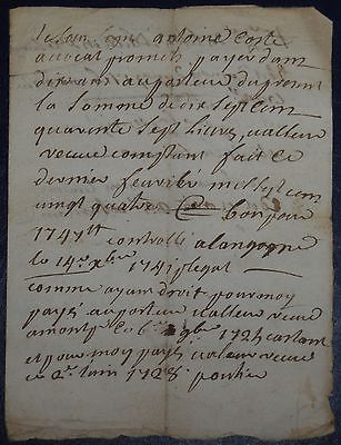 1747 ANTIQUE LEGAL DOCUMENT MANUSCRIPT HANDWRITTEN FRENCH TEXT 19x14cm