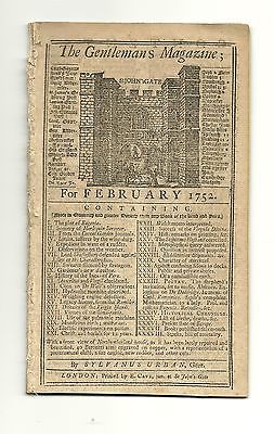 Title (ebay affiliate link): 1752 English periodical "THE GENTLEMAN'S MAGAZINE" February,1752