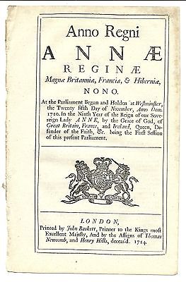 Title (ebay affiliate link): Original 18thc English ACT OF PARLIAMENT 1714 4 pages + Cover