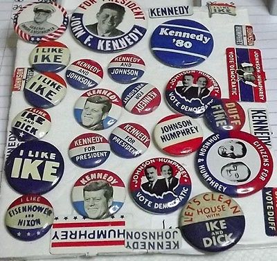 Title (ebay affiliate link): 30+ IEisenhower Kennedy Johnson Duff Pins, Label pins Used to Mint Genuine