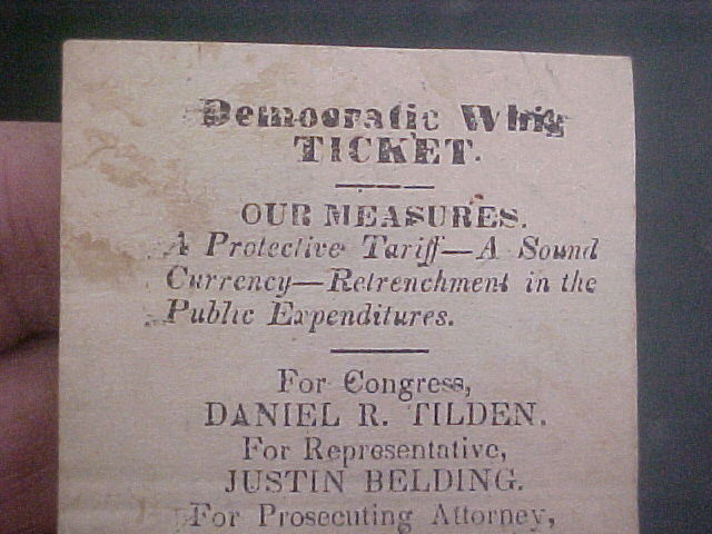 Title (ebay affiliate link): 1842 Democratic Whig Party Ohio Campaign Election Ticket TILDEN