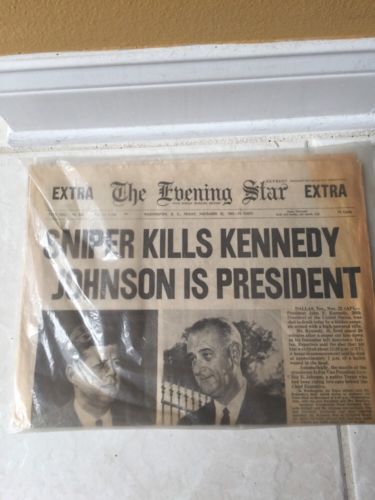 Title (ebay affiliate link): 11-1963 November 22 KENNEDY KILLED BY SNIPER JFK DALLAS EVENING STAR REPRINT