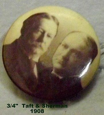 3/4" Taft & Sherman Presidential Campaign Pin Their names not on Pin Genuine
