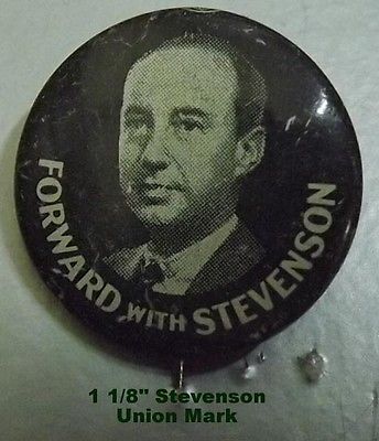 Title (ebay affiliate link): 1 1/8" Forward with Stevenson Campaign Pin Union Marks on Side Genuine