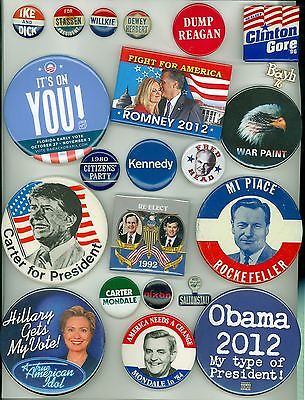 Title (ebay affiliate link): 20 Vintage Presidential Political Campaign Pinback Buttons Dump Reagan Clinton