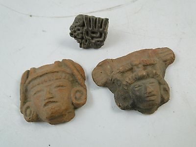 Antique Ancient Aztec Mayan Clay Warrior Medallion Art Button Set Mexican x3 Old