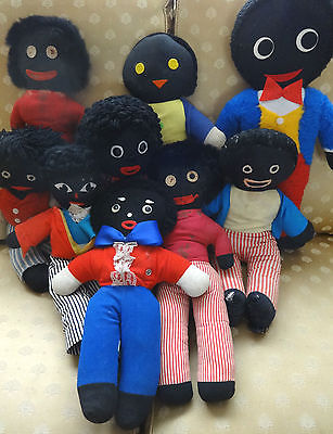 Job lot of 9 vintage British black rag dolls including Chad Valley & home made