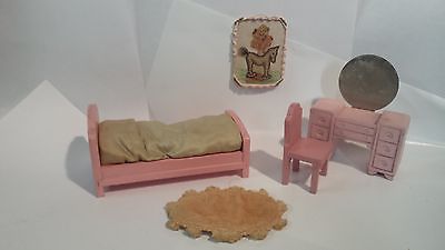 Title (ebay affiliate link): miniature dollhouse bedroom furniture pink antique