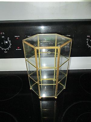 BEAUTIFUL 10.5" GLASS AND BRASS 3 SHELF SIX SIDED CURIO DISPLAY CASE