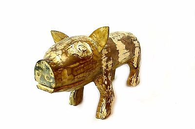 FOLK ART WOOD PIG HAND CARVED VINTAGE ANTIQUE COUNTRY FARM BARN AMERICANA DECOR
